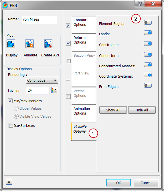 To turn off the element edges, right-click , then in the Plot dialog, click the Visibility Options tab, and click the Element Edges slider to move it to the left.