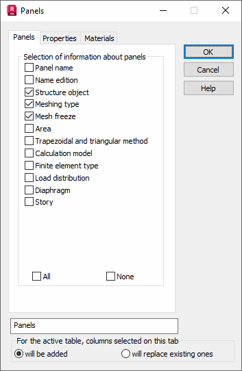 3. Right-click in the Panels table, and click Table Columns from the context menu.