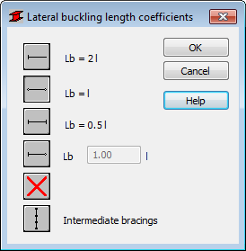 To calculate the lateral buckling coefficient properly, it is necessary to define the lateral buckling length. The dialog contains typical methods of member support which determine appropriate values of lateral buckling length coefficients.
