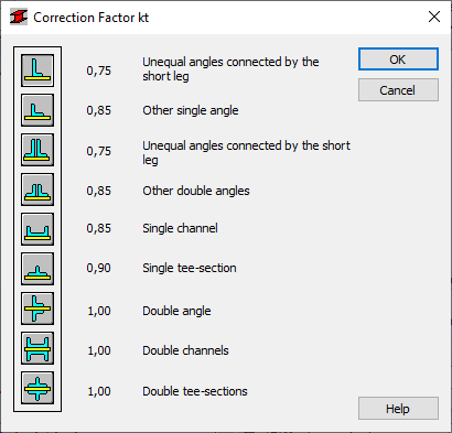 Use this option to define a value of the correction factor kt. This factor is taken into account when calculating tensile resistances of a member, as specified in Section 7.2 of the code. You can select one of the options in this dialog which coincide with the factor values in table 7.3.2 of the code.