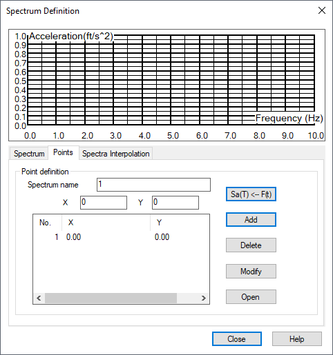 A previously defined spectrum may be modified. Once an appropriate point on the list is selected, the point coordinates are displayed in the X and Y fields. Enter new coordinates and click Modify.