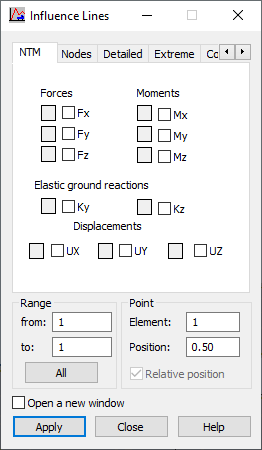 Use the Influence Lines dialog to create influence lines for a selected quantity.
