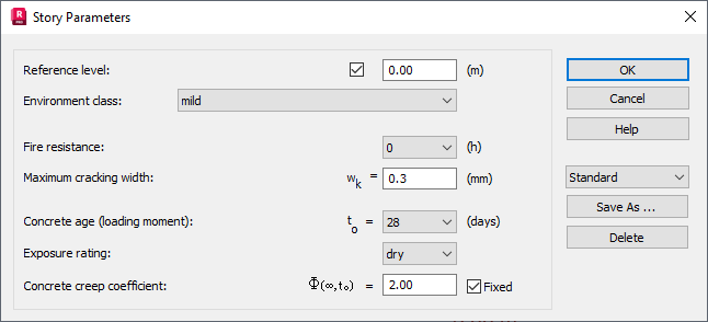 The Story Parameters dialog allows you to define parameters of a story according to the Eurocode 2 (Belgian NAD) code.