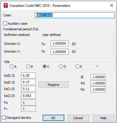 The parameters of the seismic simplified analysis according to the equivalent lateral force method depend on a seismic code and a method of defining the values of the fundamental periods selected in the Seismic Analysis dialog.