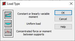During automatic calculations, the character of the load changes with the changes of load case. For automatic calculations, the default option is Constant Moment, Linearly. After a calculation case is selected manually, or the value of internal forces is defined by the user, the character of the load can be exactly determined.