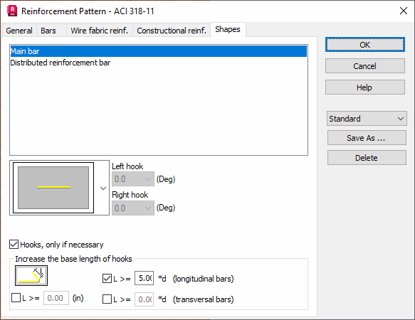 Additionally, you can define the hook length directly (by defining the length value) or by correlating the hook length with bar diameter.