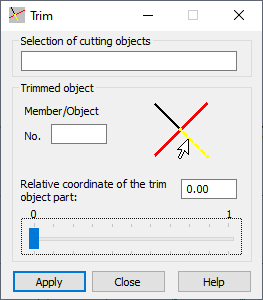 - Member/Object field specifies the member or object number of which the part is to be trimmed.