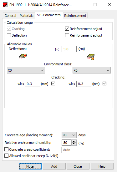 Reinforcement Parameters - SLS Parameters tab (RC slab)