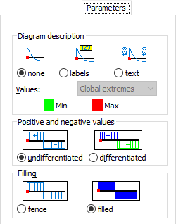 - Fence - When selected, the quantities diagrams from the Diagrams dialog will be fence type. The diagram is filled with ordinates at every step.