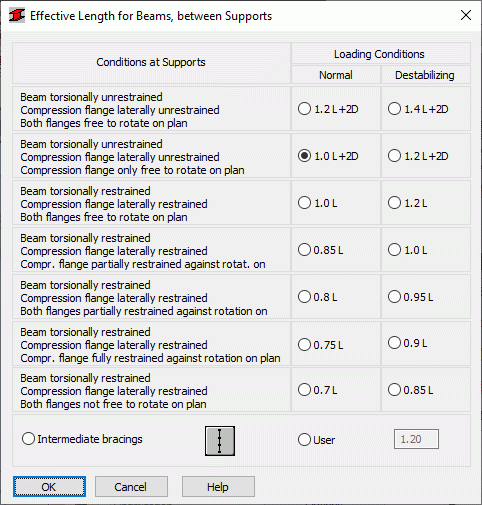 The option allows you to define distances between member cross-sections protected against torsion, that is the lateral buckling length for beams. To access the option: