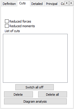 Select the Cuts tab in the Panel cuts dialog to present reduced forces and moments.