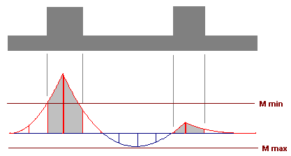 - The foundation is designed for the maximal span moment and support moment; these moments are calculated considering the support width. The occurrence of top reinforcement depends on that, whether the tensile moment acting on top fibers exists (it may as well be forced in the Reinforcement Pattern dialog box)