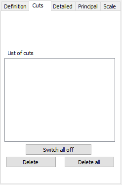 The List of Cuts field shows all cuts defined for a structure. For each cut, three pieces of information are presented.