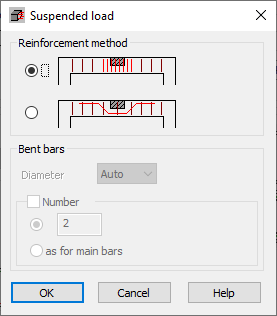 In case of bent bars there is a possibility to determine their diameter and number. If the 'Auto' diameter is chosen, the program will select the diameter automatically so that it fulfills the load capacity requirements.