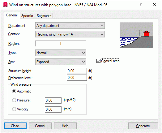 - Basic wind velocity - Determines the basic value for wind velocity, which depends on the structure's geographical position.