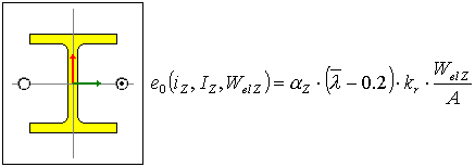 For the code: EC3 (ENV 1993-1-:1992), the initial deflection is calculated from the following formula:
