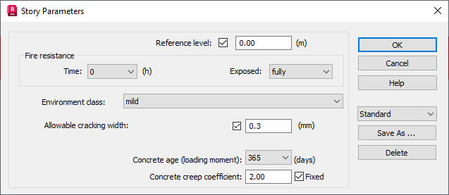 The Story Parameters dialog allows you to define parameters of a story according to the Indian (IS456:2000) code.