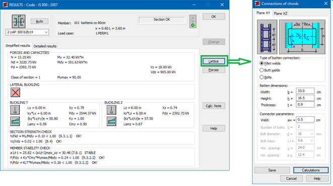 Verification of the chord connection includes a resistance check of the element connecting the chords (batten resistance, compression with buckling of diagonals and posts) and resistance check of welds (bolts) connecting battens (lattice) with a member section.