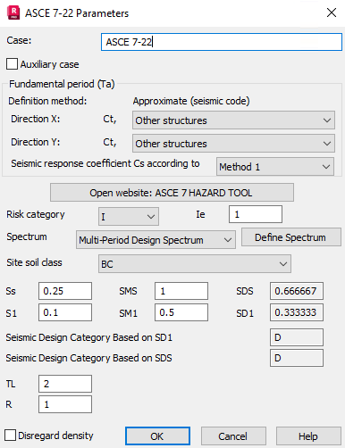 Seismic Analysis Parameters (US Code ASCE 7-22)