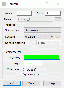 At the bottom of the dialog box, you can specify more options for defining the geometry of a structure column: