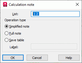 Use this dialog to select the type of calculation note to display.