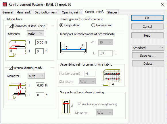 The assembling reinforcement of wire fabrics is a reinforcement that can be disregarded in calculations. It is used only to assure proper reinforcement stiffness in wire fabrics. You can also determine the number of pins per m2 of a deep beam and define their diameter.