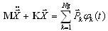 where K, M - stiffness and mass matrices, Γ - mass participation factor, Sa - spectra acceleration, T - period, i - mode number, k - coefficient of spectrum scaling, dir - index of input seismic motion direction (dir = X,Y,Z), x - displacement vector for maximum reaction of i-mode.
