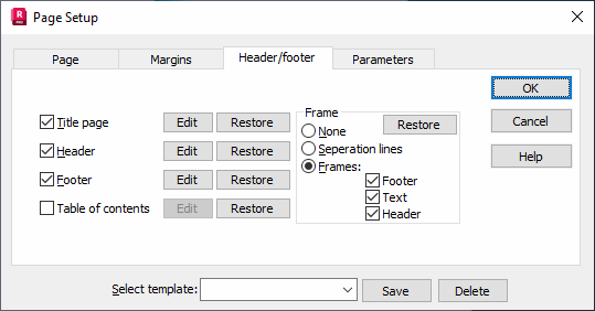 Click Restore to return to the default settings of the printout frames.