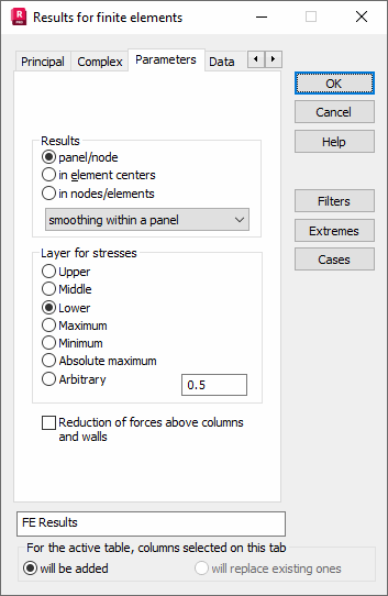 In the Layer for stresses field: Upper, Middle, Lower, Maximum, Minimum, Maximum or Arbitrary (coordinates are given in the edit field).