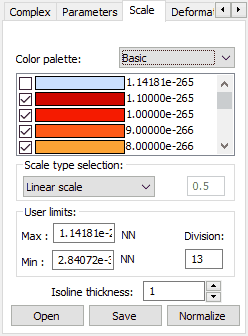 Right clicking in the palette of colors on the Scale tab you can select the following.