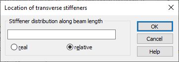 The above dialog box enables defining the distribution of transverse stiffeners over the beam length (in real or relative coordinates with respect to the beam length).