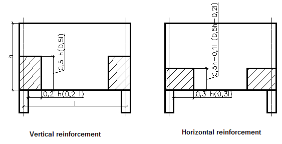 Deep-beam calculations (according to the Polish RC code, apart from the typical horizontal and vertical reinforcement) can generate additional reinforcement zones in the vicinity of supports and in areas where concentrated loads are applied (such as on a distribution area or at a point). This enables the structure to safely carry the stresses concentrating in these areas. To calculate this, the following steps are followed.