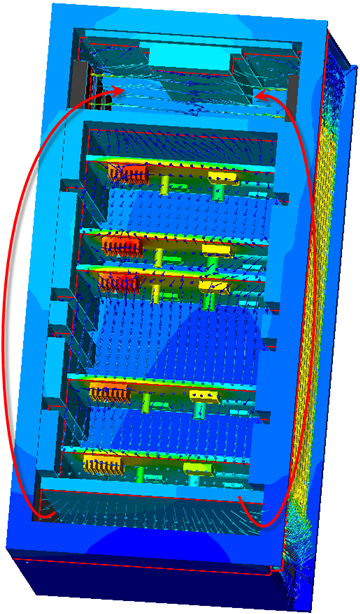 A basic guideline for a high-quality analysis model is that the mesh distribution be sufficient to resolve the flow and temperature gradients efficiently. In regions where the flow circulates or experiences large gradients (such as in wakes, vortices, and separation regions), a finer mesh is required.