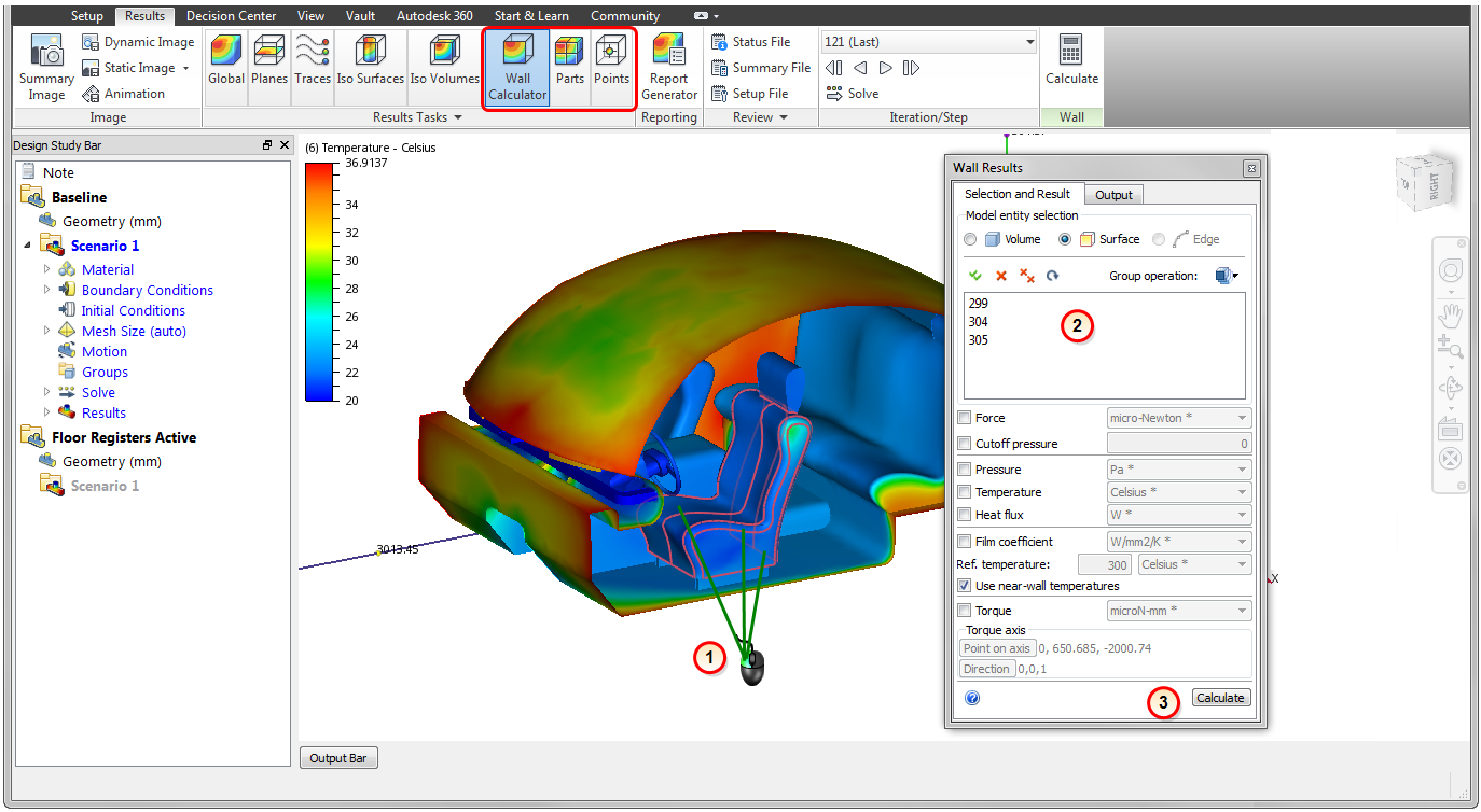 In addition to visualizing data, you can extract specific values using the Wall Calculator, Parts and Points tools.
