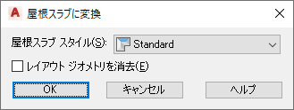 をクリックします. [屋根スラブに変換]ワークシートは、作業中の作図に存在する屋根スラブ スタイルを表示します。