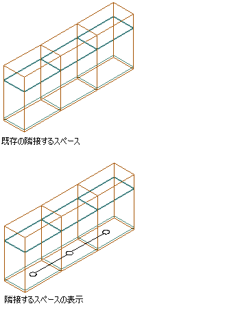 ほとんどの場合、スペース サーフェス間の隣接関係は、建物のプランをエンジニアリング アプリケーションに書き出して処理するために重要です。AutoCAD Architecture 2027 toolset 内で隣接関係の状態を確認する必要がある場合は、図面上に隣接関係を表示させることができます。