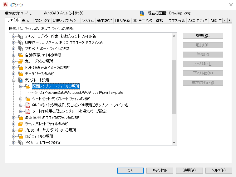 [オプション]ダイアログ ボックスでテンプレート ファイルの場所を設定