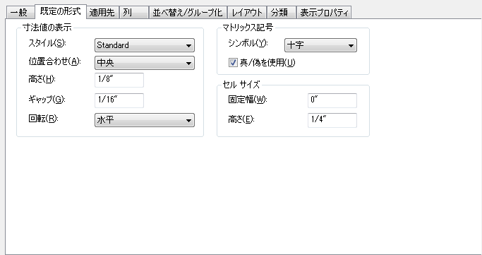 - [真/偽を使用]チェック ボックスをオンまたはオフにして、マトリックス記号やプロパティ データ形式テキストを真/偽値に使用するかどうかをコントロールします。