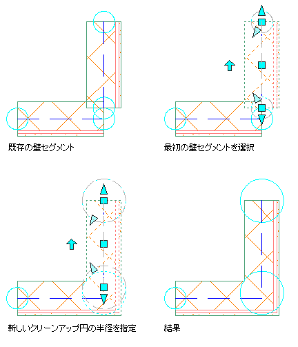 正しくクリーンアップするために壁クリーンアップ円の半径を調整する