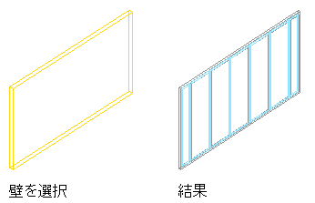 既存の壁を基にしてカーテン ウォールを作成するには、次の手順を実行します。それぞれの壁セグメントごとに、独立したカーテン ウォールが作成されます。変換過程で、セル、フレーム、マリオンの外観や、カーテン ウォール グリッドのセルの数とサイズを決定するカーテン ウォール スタイルを選択するよう求めるプロンプトが表示されます。