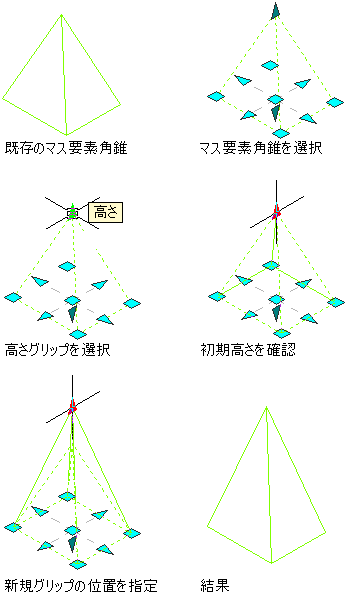 グリップを使用してマス要素の高さを変更するには、次の手順を実行します。