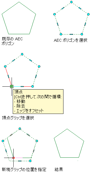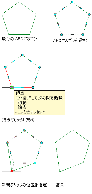 AEC ポリゴンの頂点を頂点グリップを使って移動する