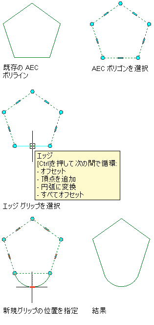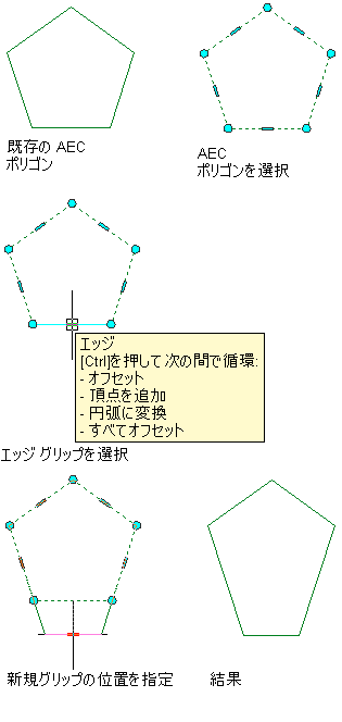 AEC ポリゴンのエッジを頂点グリップを使ってオフセットする