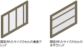 グリッドにセル寸法固定を指定するときに、グリッド セルを調整して余分な空間の量を調整する方法をコントロールすることができます。余分な空間は、組合せ窓の長さ(または高さ)がセルの固定サイズによって均等に分割できない場合に生じます。