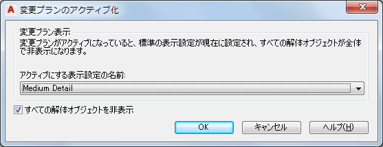 解体オブジェクトは既定ではオフになっています。プランを解体オブジェクトとともに表示するには、