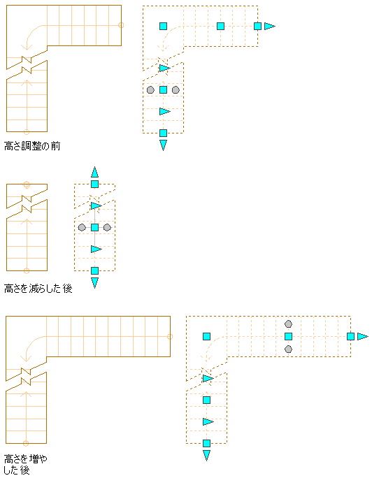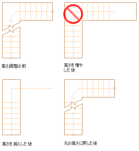 StairFit オプションを無効にしたときの[階段の高さの変更]