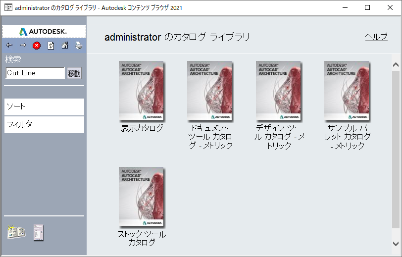 AutoCAD Architecture 2027 toolset が現在開いていない場合であっても、Windows のコマンド プロンプトからコンテンツ ブラウザを開くには、次の操作を実行します。