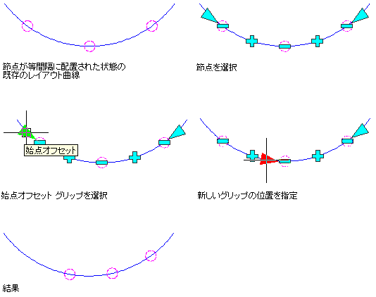 グリッドを使用してレイアウト曲線の始点オフセットの節点の場所を変更