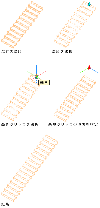 グリップの選択後、正確な値を入力して、階段の高さを増減することもできます。