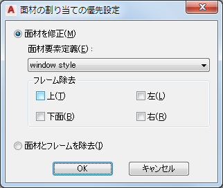 | 上書きを現在のカーテン ウォール ユニット スタイルに保存するには | [セルの優先設定をスタイルへ転送]を選択して、[OK]をクリックします。 注: 面材の優先だけを作成した場合は、[セルの優先設定をスタイルへ転送]チェックボックスだけが利用可能になります。セル合成や、フレームまたはマリオン エッジの優先設定など、その他の優先設定も作成した場合は、対応するチェックボックスも利用可能になります。それらの設定変更もスタイルに保存するには、対応するチェックボックスも選択してください。
